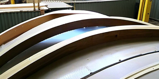 Этапы изготовления банного купола из гнутых деревянных балок